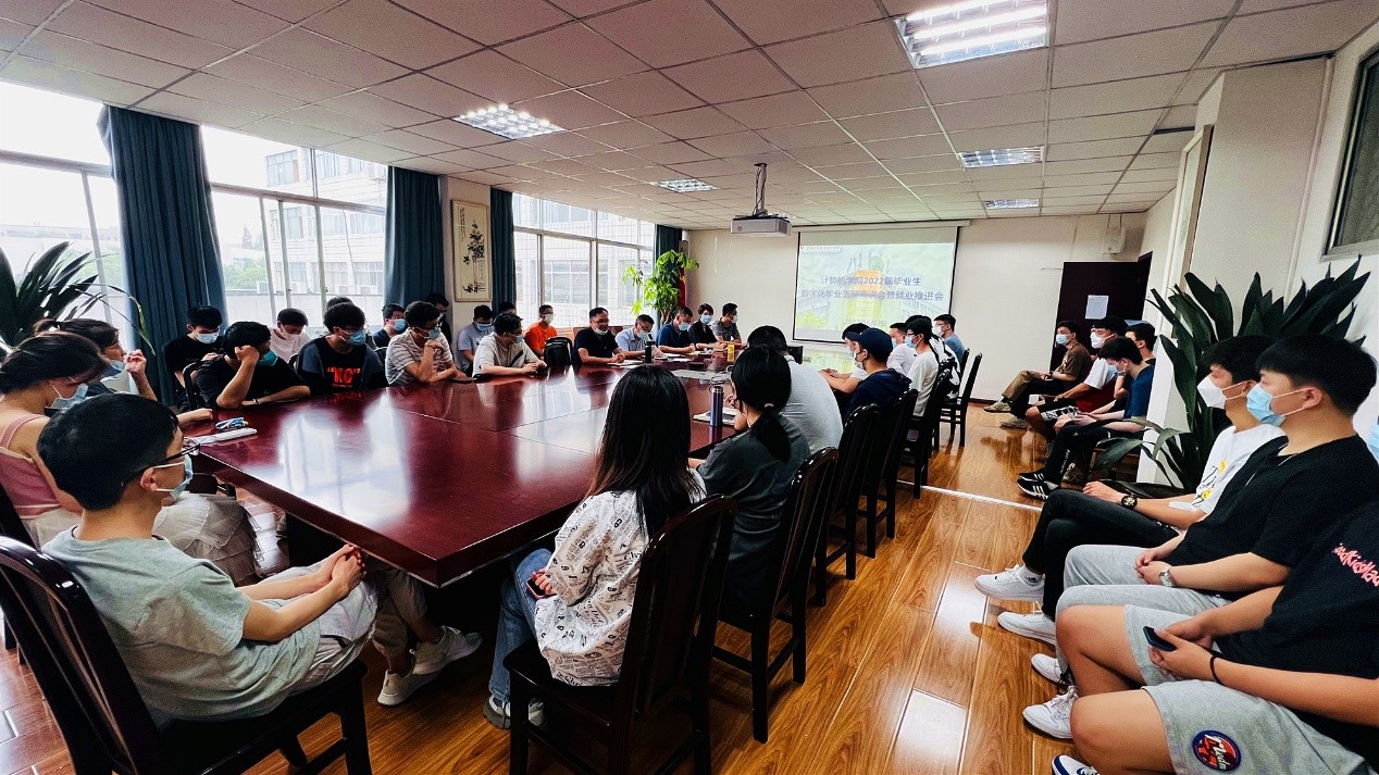 吴文杰辅导员从最新就业数据、网签情况等方面,分析了2022届毕业生的就业形势。在交流发言环节,未就业的同学们简要汇报了目前自身的求职情况及未来规划,并向学院提出了自己在求职过程遇到的困难,与会领导和老师对同学们提出的问题针对性地给予了建议和帮扶办法。