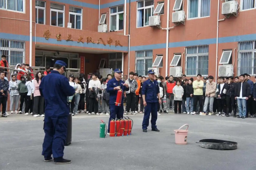 演练结束后,由公安局教官为师生及管理人员进行消防器材的操作培训,详细介绍灭火器的种类及使用方法,并让同学们操作灭火器进行演练,在场师生积极参与,学以致用,更加深入了解消防器材的使用方法和注意事项。