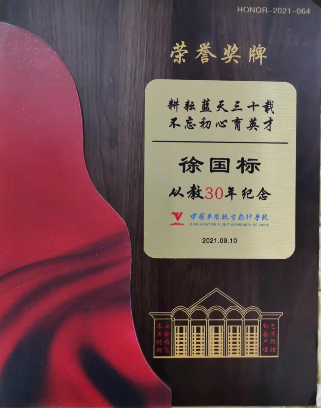 中飞院从教三十年荣誉奖